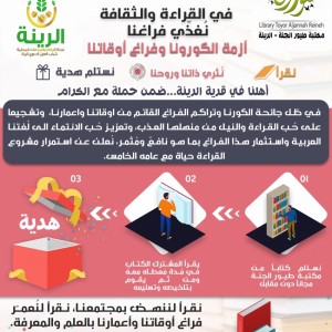 استثماراً للفراغ القاتم- لجنة الزكاة والصدقات الرينة تُطلق مشروع القراءة حياة في عامه الخامس- نقرأ كتاب، نُلخّصُهُ، نستلم هدية