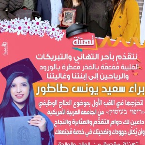 مُبارك إن شاء الله: تهنئة للإبنة الغالية براء سعيد طاطور بمناسبة التخرج للقب الأول -ריפוי בעיסוק - مقدمة من الوالد والوالدة والعائلة