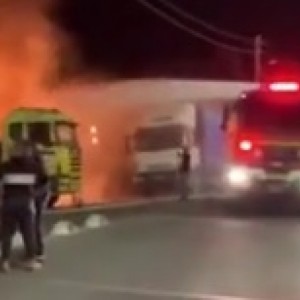 اندلاع حريق بثلاث شاحنات قرب دوار المشهد - الرينة ومباشرة التحقيق في الأسباب