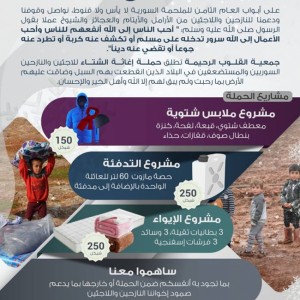 انطلاق حملة الشتاء الدافئ لاغاثة اخواننا اللاجئين السوريين