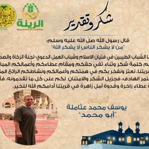 رسالة شكر وتقدير من الأخ يوسف محمد عثاملة إلى فتيان الاسلام وشباب العمل الدعوي الرينة