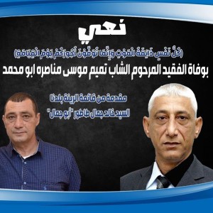 قائمه الرينه بلدنا -السيد خالد جمال طاطور ينعيان الفقيد المرحوم تميم موسى مناصره "أبو محمد"