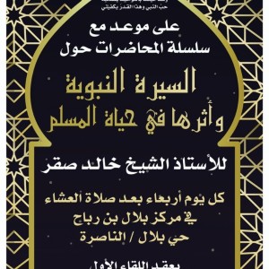 لجنة العمل الدعوي في الناصرة تدعوكم لحضور سلسلة السيرة النبوية مع الشيخ خالد صقر كل يوم اربعاء