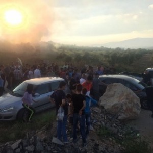 اهالي بلدة المشهد يتظاهرون ويشعلون النيران بهوائيتين جديدين بعد نصبهما قرب الاحياء
