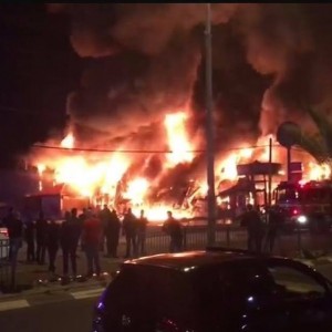 حريق هائل في محلات تجارية بالمنطقة الصناعية الطيرة