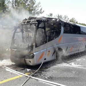 اندلاع حريق في حافلة خالية من الركاب قرب شعب واصابة السائق متوسطة