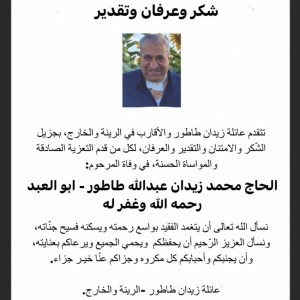 شكر على تعاز بوفاة الحاج محمد زيدان عبدالله طاطور - أبو العبد