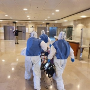 طواقم الاطفاء والانقاذ مستمرة بتعقيم مناطق عدة في البلاد ومنها محطات فحص كورونا في بلدات عربية