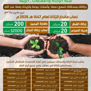 اهلنا في الرينة- حَيّ عَلى الزكاة- { فِطرة الصيام} فريضةٌ وحقٌ واجب على فردٍ- زكاة مالي لابن بلدي