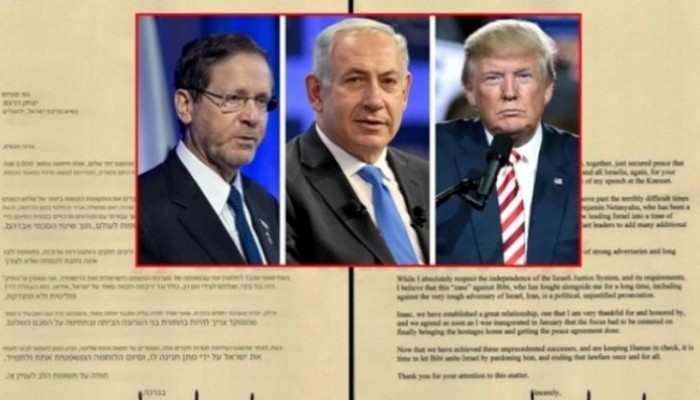 استلم رئيس الدولة الإسرائيلي إسحاق هرتسوغ صباح اليوم رسالة رسمية موقعة من الرئيس الأمريكي السابق دونالد ترامب، دعا فيها هرتسوغ إلى النظر في إمكانية منح العفو لرئيس الوزراء بنيامين نتنياهو.