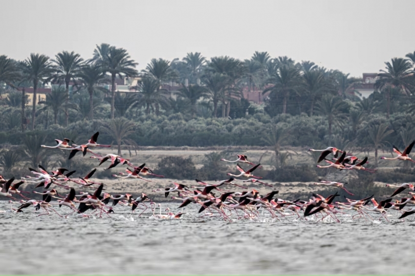 في مصر، وتحديدا ببحيرة قارون بمحافظة الفيوم، وثقت عدسة المصور المصري، أحمد عماد، مشاهد خلابة لطيور الفلامنجو، التي تُعرف باسم طيور النحام الوردي.