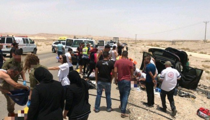 عمم الناطق بلسان نجمة داوود الحمراء بيانا على وسائل الإعلام ، اليوم الخميس، جاء فيه: "وصل بلاغ الى مركز نجمة داوود الحمراء لواء النقب ، في تمام الساعة 12:01، مفاده وقوع حادث طرق مروع بين سيارتين على شارع رقم 90 من عين يهاف لإتجاه فارن في الجنوب. وفقا للمعلومات الأولية لطاقم من المسعفين والمضمدين الذي وصل الى مكان الحادث، أنه أصيب 6 أشخاص بجراح متفاوتة، بينهم ولدان فاقدي للوعي، وحول تفاصيل أخرى سنوافيكم لاحقا" بحسب البيان.