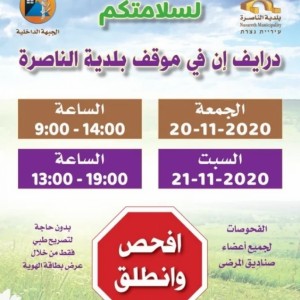 بلدية الناصرة: ندعو المواطنين لاجراء فحص الكورونا اليوم وغداَ