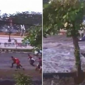 اندونيسيا: مواطنون يركضون هربا من موجة مد جارفة