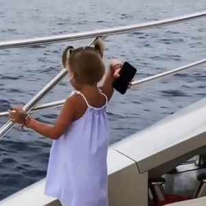 لقطات طريفة لطفلة ترمي هاتف والدها في البحر (فيديو)