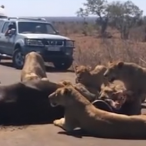 اسود يقطعون الطريق لست ساعات