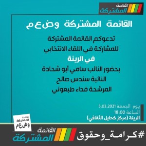 اليوم: لقاء انتخابي للقائمة المشتركة في الرينة