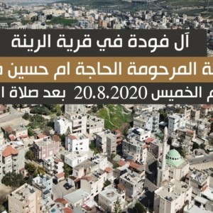الناصرة- الرينة: الحاجة راضيه محمد داهود موعد في ذمّة الله