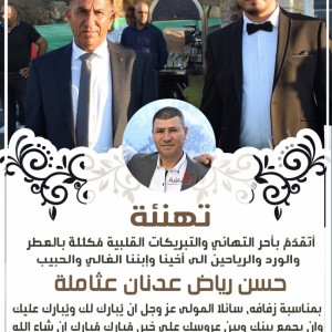 تهنئة للعريس الغالي حسن رياض عثاملة بمناسبة الزفاف - مقدمة من العم حسن عدنان عثاملة- ألف مبروك