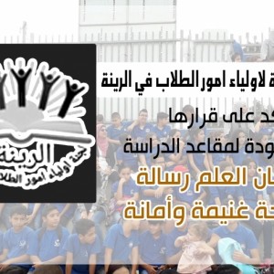 اللجنة المركزية لاولياء أمور الطلاب في الرينة تؤكد على قرارها- ارجاء العودة لمقاعد الدراسة - الصحة غنيمة وأمانة