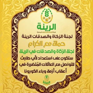 لجنة الزكاة والصدقات في الرينة ستكون على استعداد لأي طارئ للتواصل مع العائلات المُتضررة في أعقاب أزمة وباء الكورونا