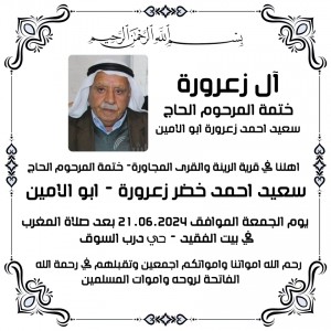 ختمة المرحوم الحاج سعيد احمد خضر زعرورة "ابو الامين" غداً الجمعة بعد صلاة المغرب