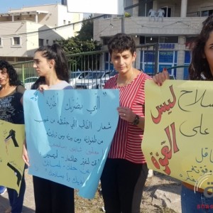 طاقم معلمي مدرسة اللاتين في قرية الرينة في وقفة احتجاجية تنديداً بجرائم القتل