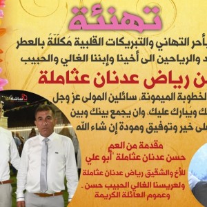 تهنئة للعريس الغالي حسن رياض عثاملة بمناسبة الخطوبة- مقدمة من العم حسن عدنان عثاملة- ألف مبروك
