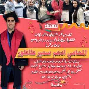 مبارك للرينة-تهنئة:حصول ابن الرينة ادهم سمير طاطور على اللقب الثاني في المحاماة