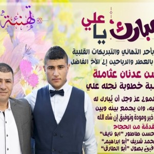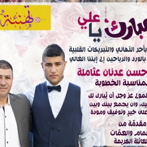 مُبارك الخطوبة - تهنئة للعريس الغالي علي حسن عدنان عثاملة - من الحجاج ابو نايف، أبو طارق، ابو ابراهيم