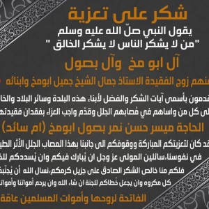 آل بصول وآل أبو مخ- شكر على تعزية بوفاة المرحومة الحاجة ميسر حسن بصول ابومخ (ام سائد)