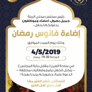 مجلس الرينة المحلي:دعوة لاضاءة فانوس رمضان يوم غد السبت