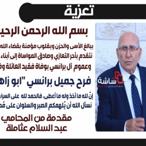 تعزية بوفاة الفقيد فرح جميل برانسي "ابو زاهي" مقدمة من المحامي عبد السلام عثاملة