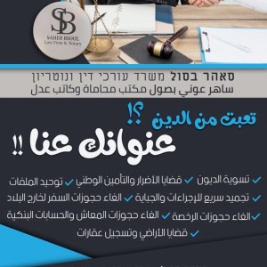 تعبت من الدين؟! عنوانك عنا- ساهر عوني بصول مكتب محاماة وكاتب عدل