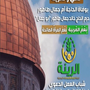 قائمة مجتمع واحد في الرينة تنعي الحاجة "أم جمال" حرم الحاج خالد جمال طاطور