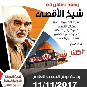 لاهالي الرينة والمنطقة: اليوم، الساعة الثالثة والنصف وقفة تضامنية مع الشيخ رائد صلاح على دوار الرينة