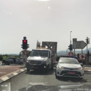حادث طرق بين سيارة وشاحنة على مفرق اكسال يتسبب بأزمة سير خانقة