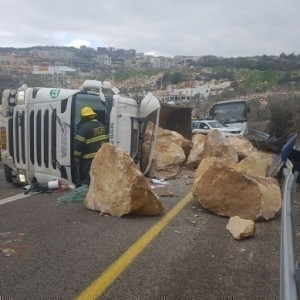 إصابة شخص بجراح متوسطة جراء انقلاب شاحنة على مدخل كسرى