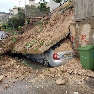 الناصرة: انهيار جدار في حي الكروم وانزلاق سيارة دون اصابات