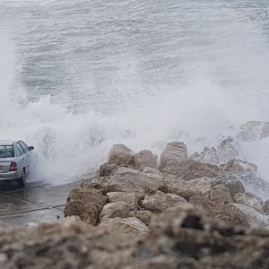 صو - أمواج البحر في عكا تعلو اسوارها بفعل العاصفة