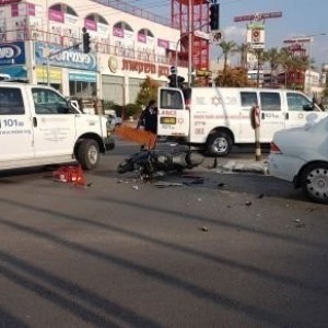 اصابة شخصين في حادث بين دراجة نارية وسيارة في المركز