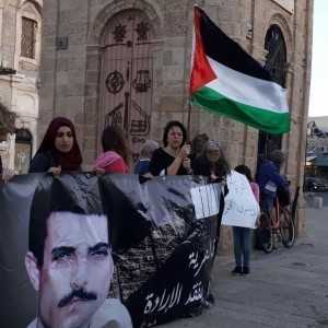 مظاهرة رفع شعارات في يافا نصرة للأسرى المضربين عن الطعام
