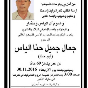 جميل جمال حنا الياس من كفركنا في ذمة الله عن عمر ناهز 69 عامًا