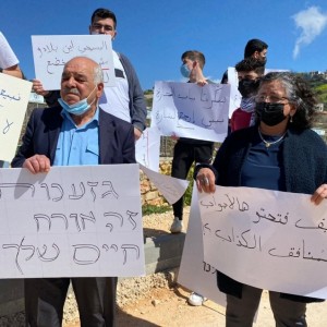 توما سليمان وشحادة في مركز الشرطة للضغط من أجل تحرير معتقلي مظاهرة الجش