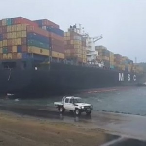 بالفيديو.. العاصفة تنتصر على سفينة شحن ضخمة