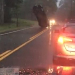 فيديو صادم لسيارة تقف في الهواء من قوة العاصفة