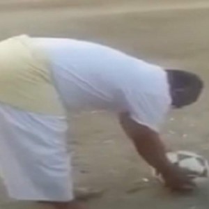 مسن خليجي يبدع في تسديد كرة قدم على طريقة "بيكهام"