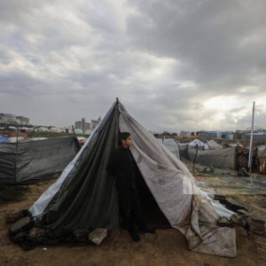 نداء استغاثة من النازحين بقطاع غزة : مياه الامطار غمرت خيامنا، انقذوا اطفالنا