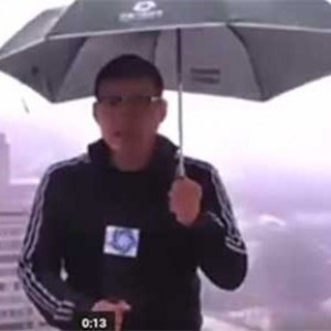 لحظة تعرض صحافي لضربة برق
